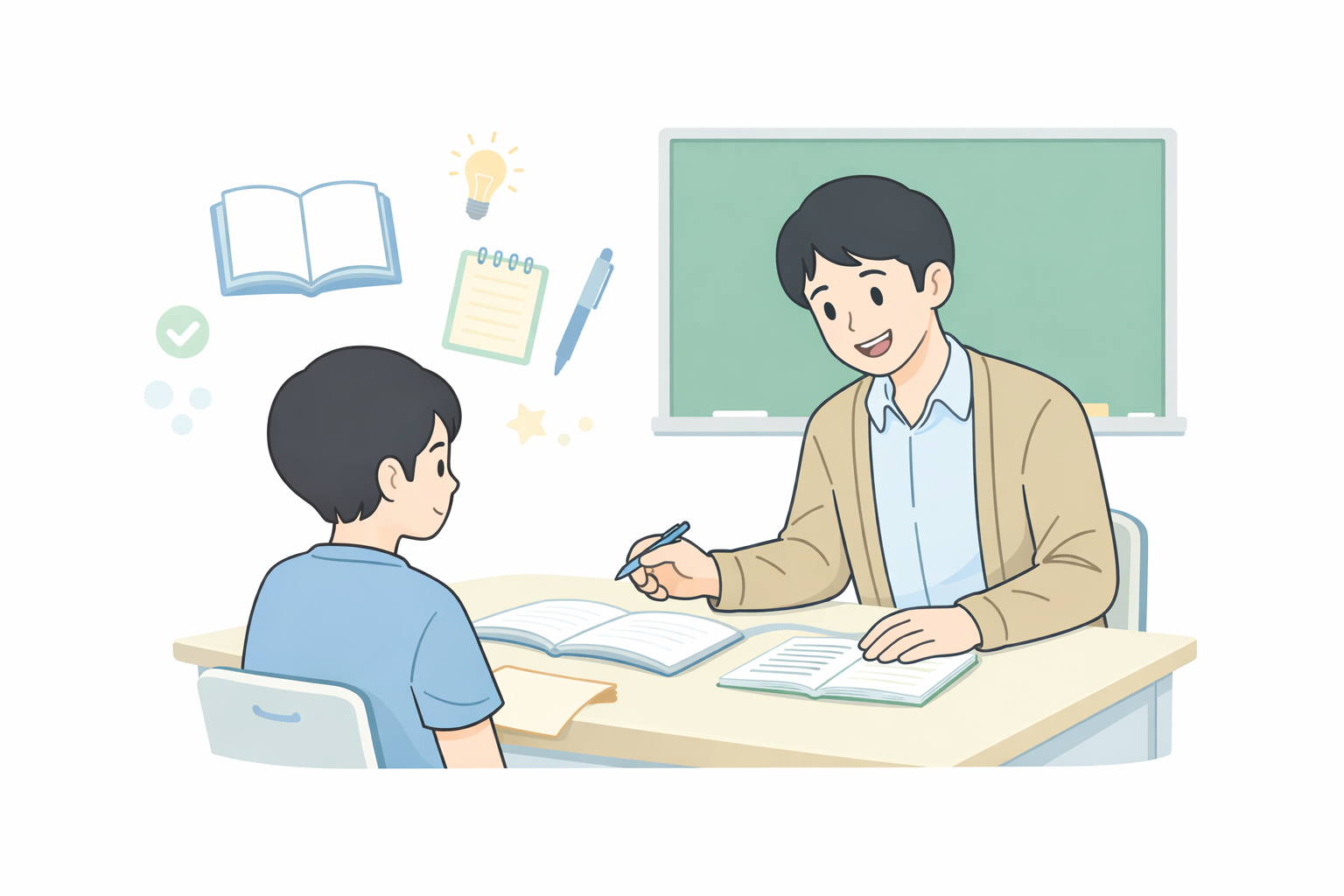 塾には複数の講師が在籍しているため、生徒が受ける教科はそれぞれ得意な先生に割り振られます。一人で全ての科目を背負う必要はありません。 - 初心者でも安心して始められる